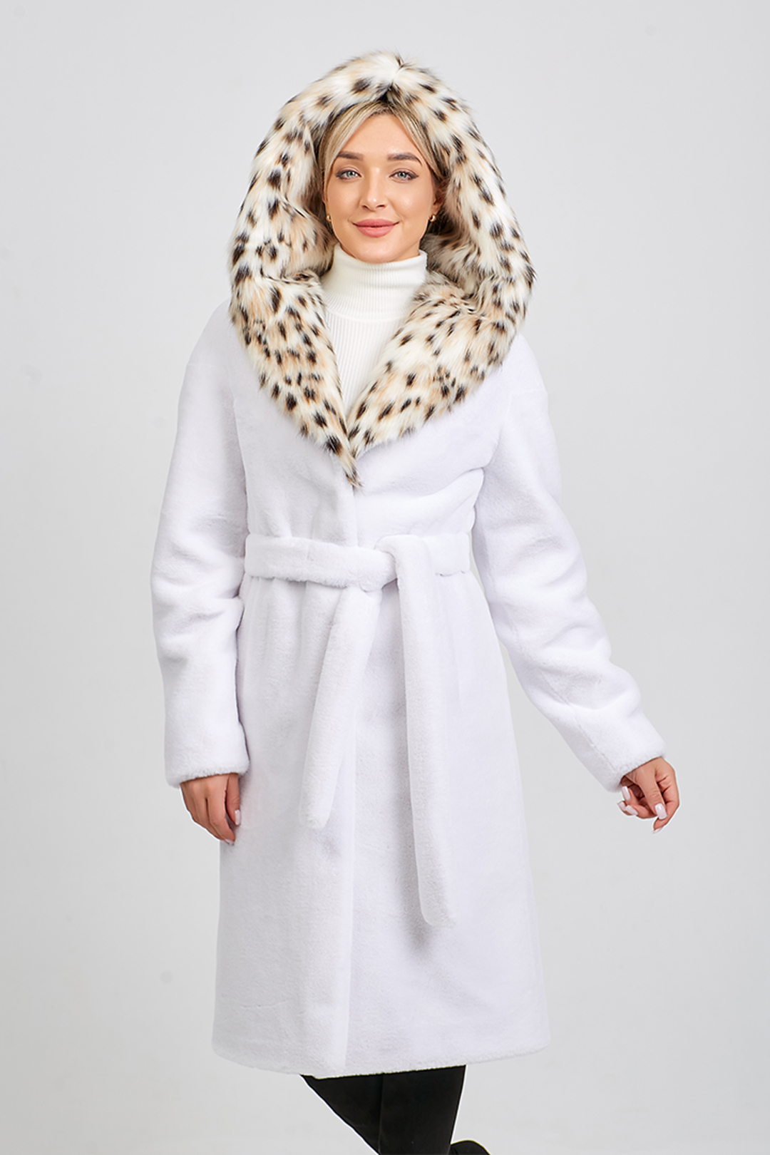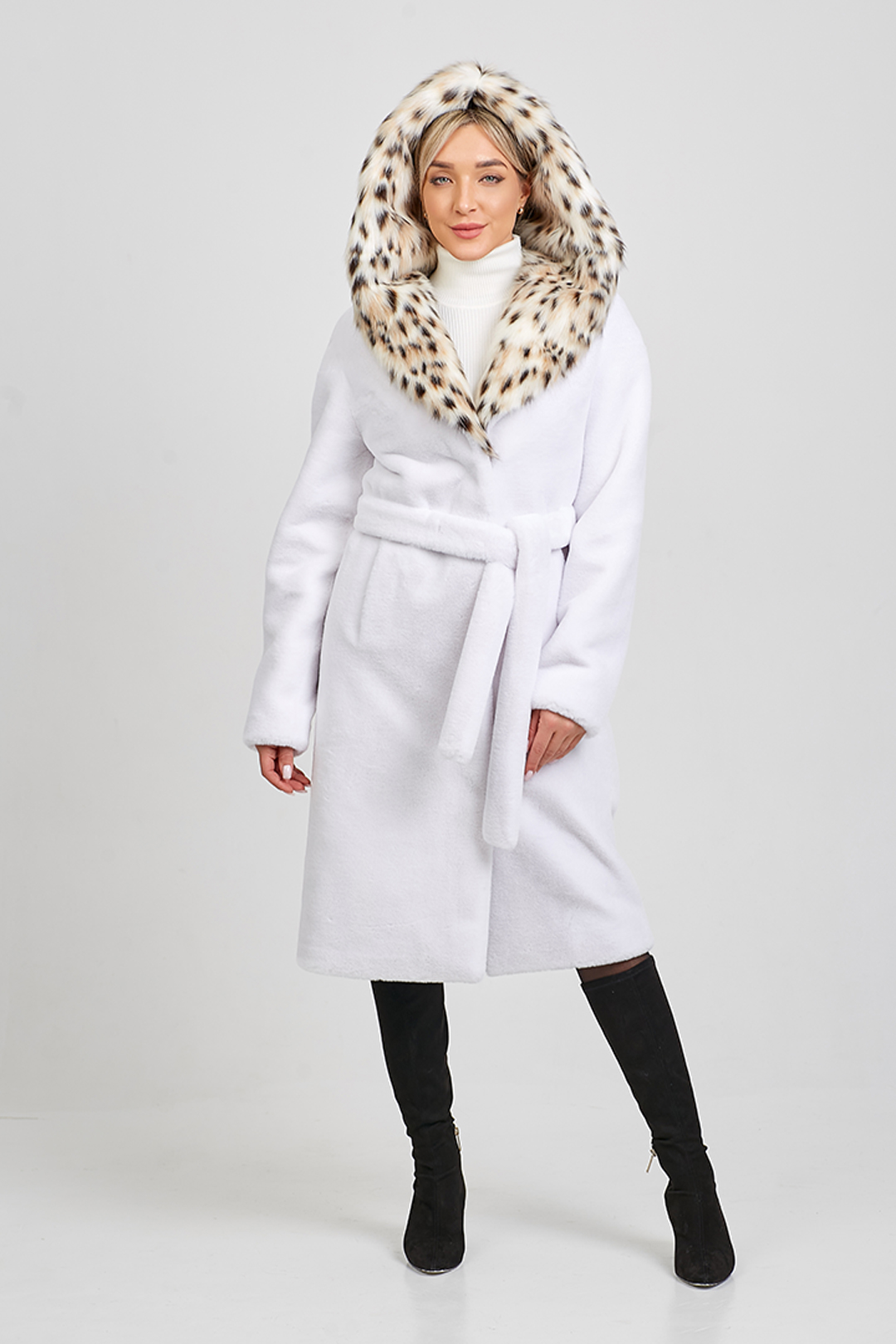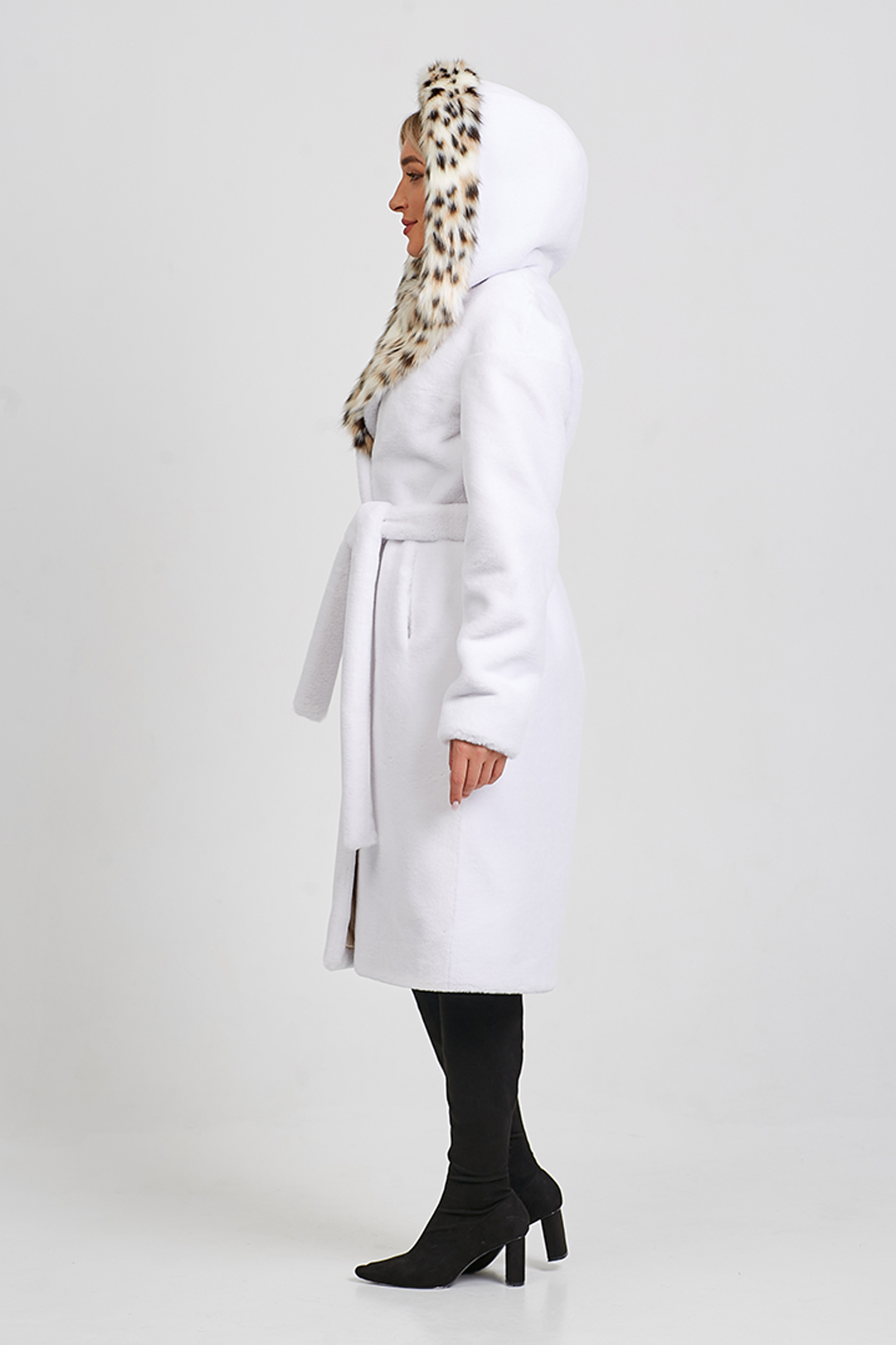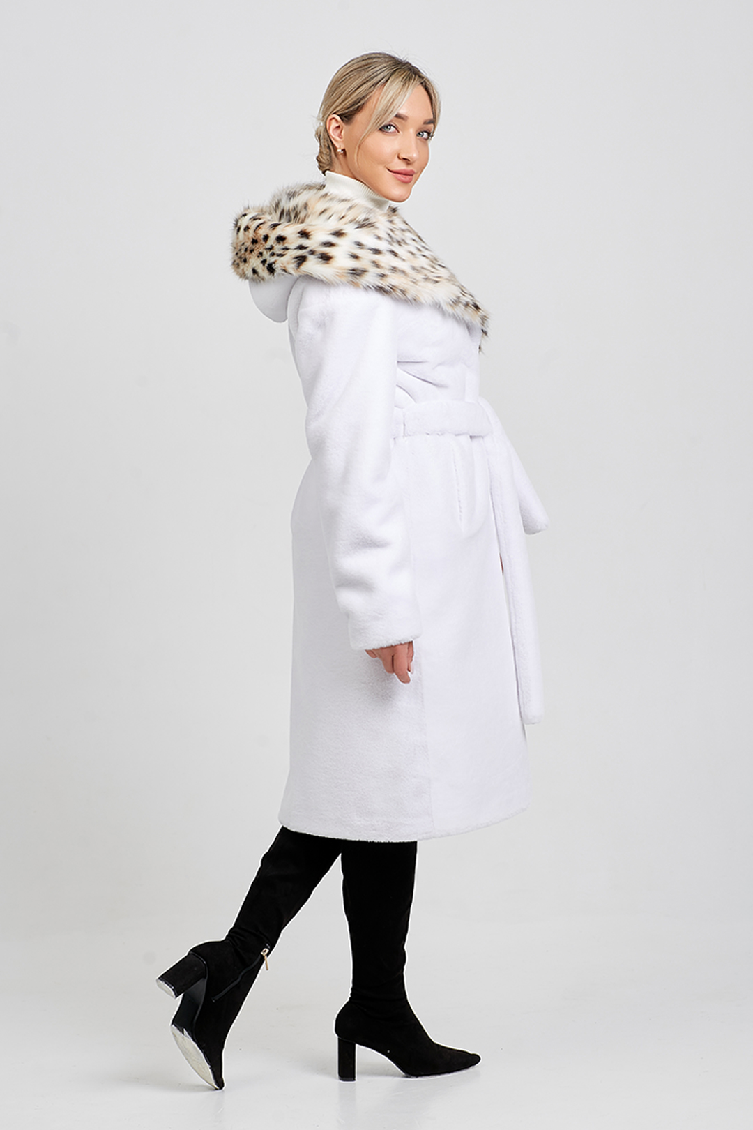 Пальто женское из овечьей шерсти ЭМ-14 (Белый) с капюшоном