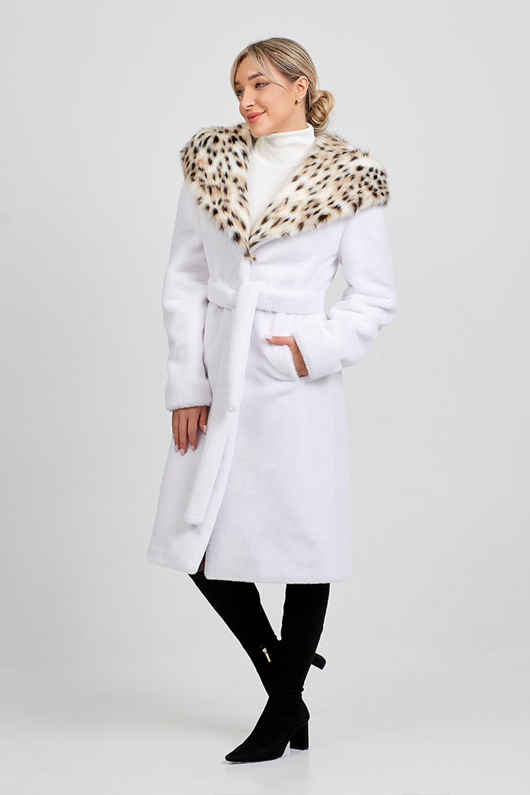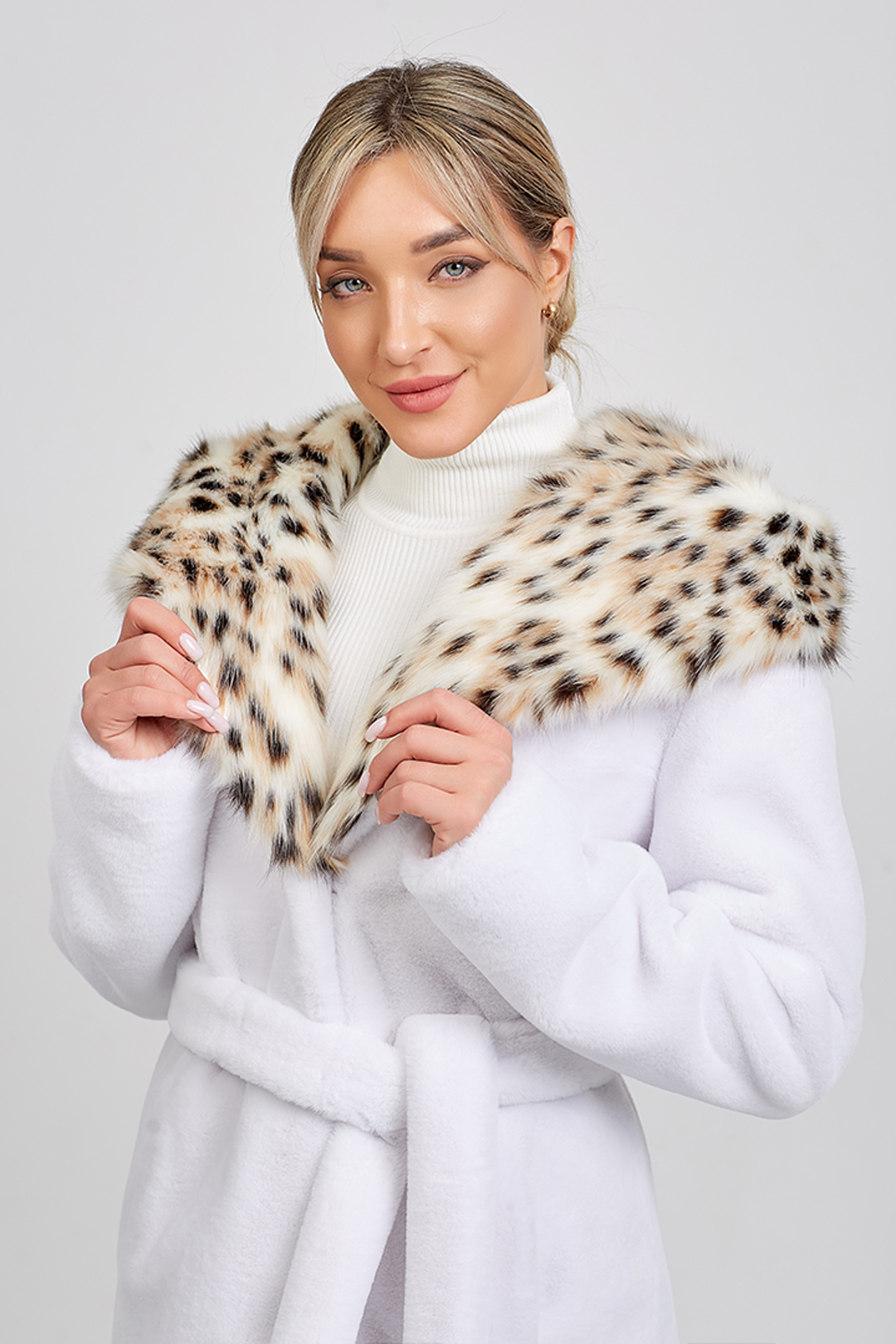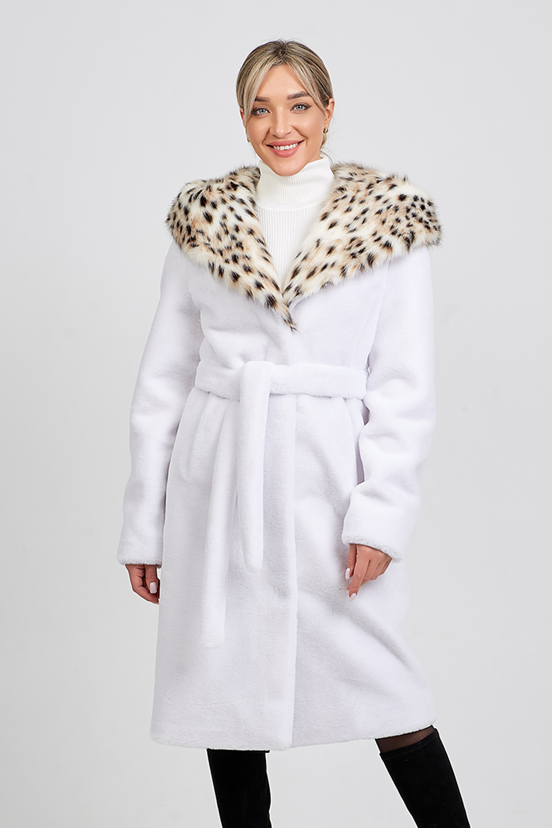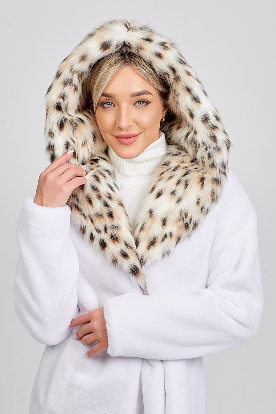Пальто женское из овечьей шерсти ЭМ-14 (Белый) с капюшоном