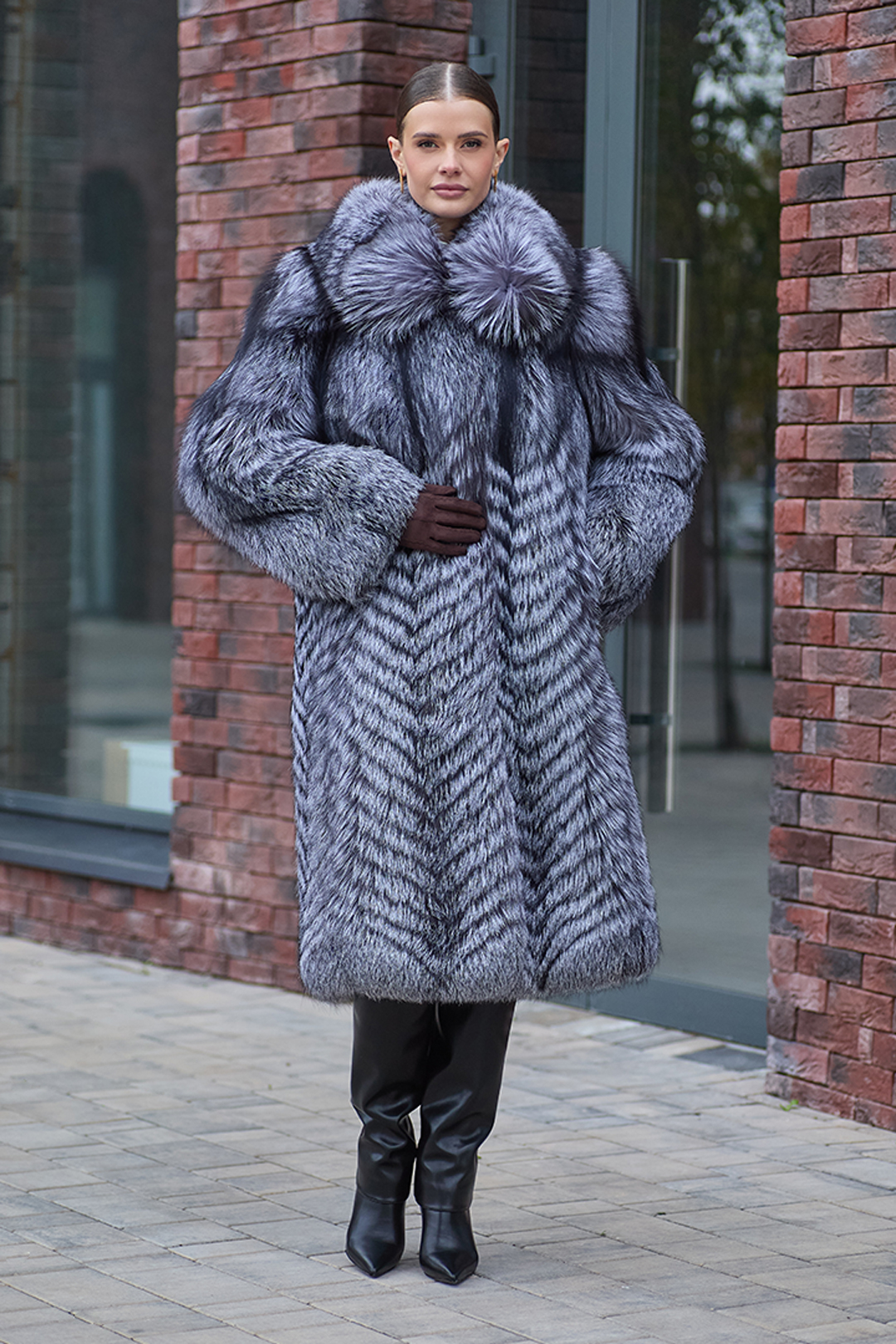 Шуба из серебристо-черной лисы "Классика" (Чернобурка) с воротником