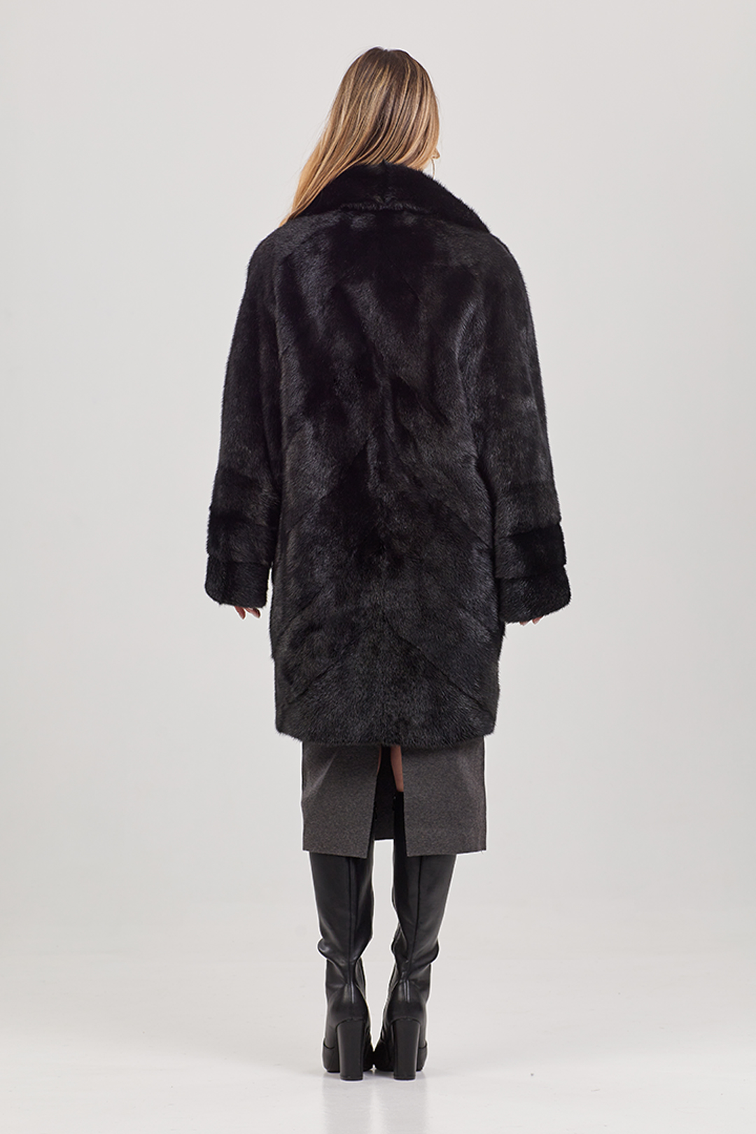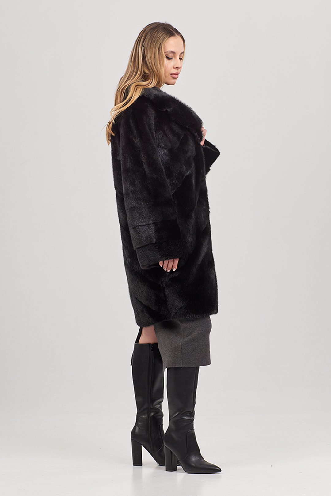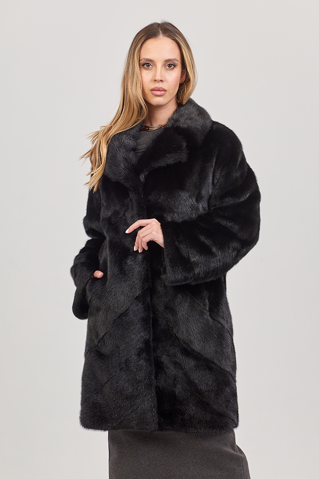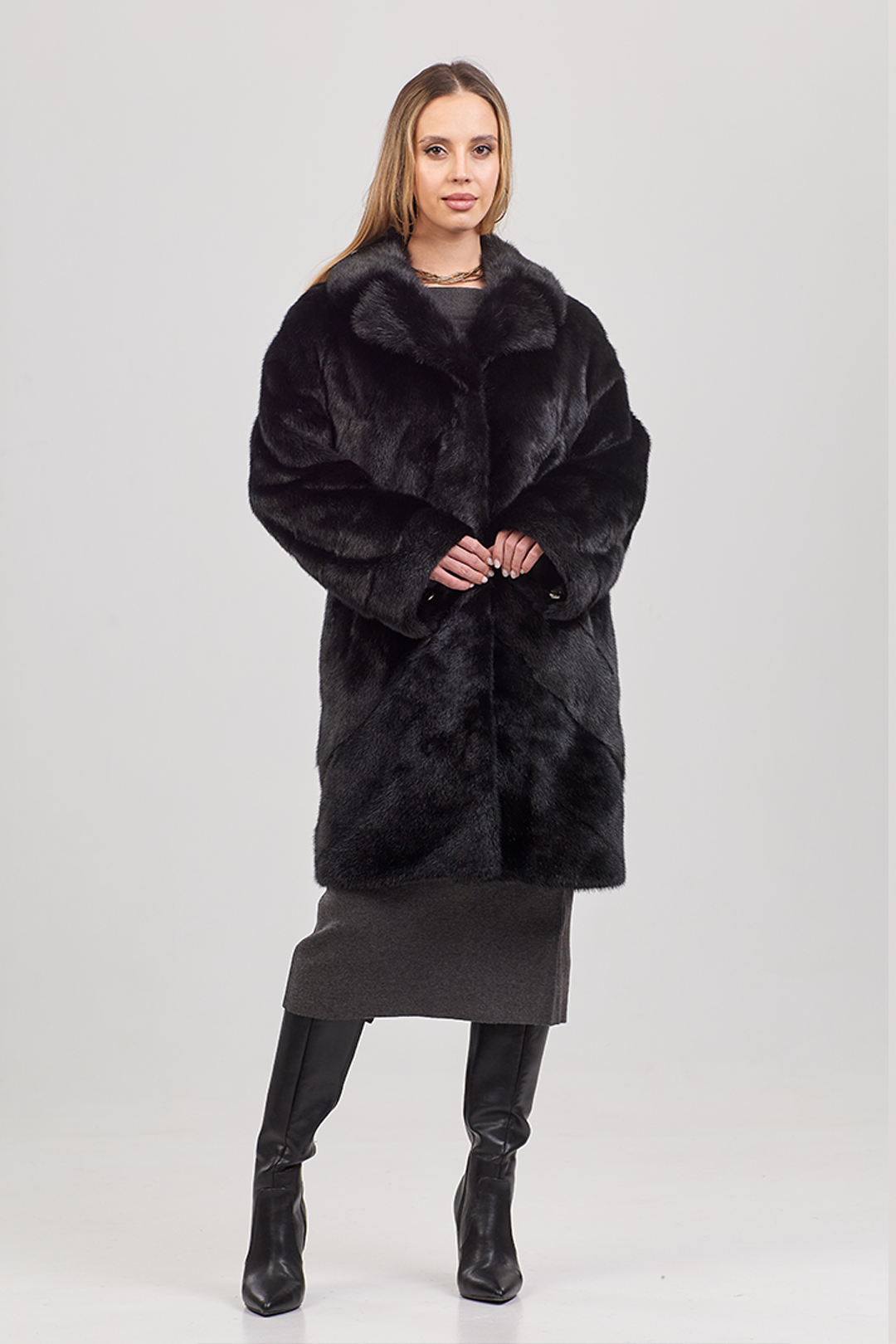 Шуба норковая "Каролина" (Черный) английский воротник, 90 см