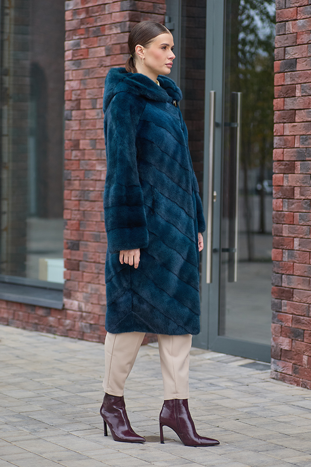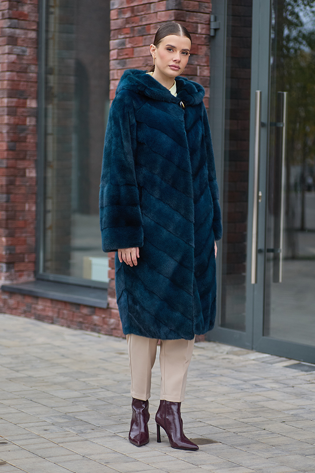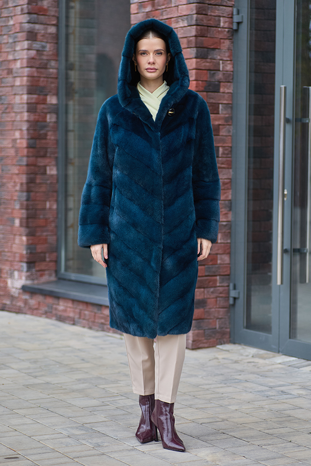Шуба норковая "Каролина" (Изумруд) с капюшоном