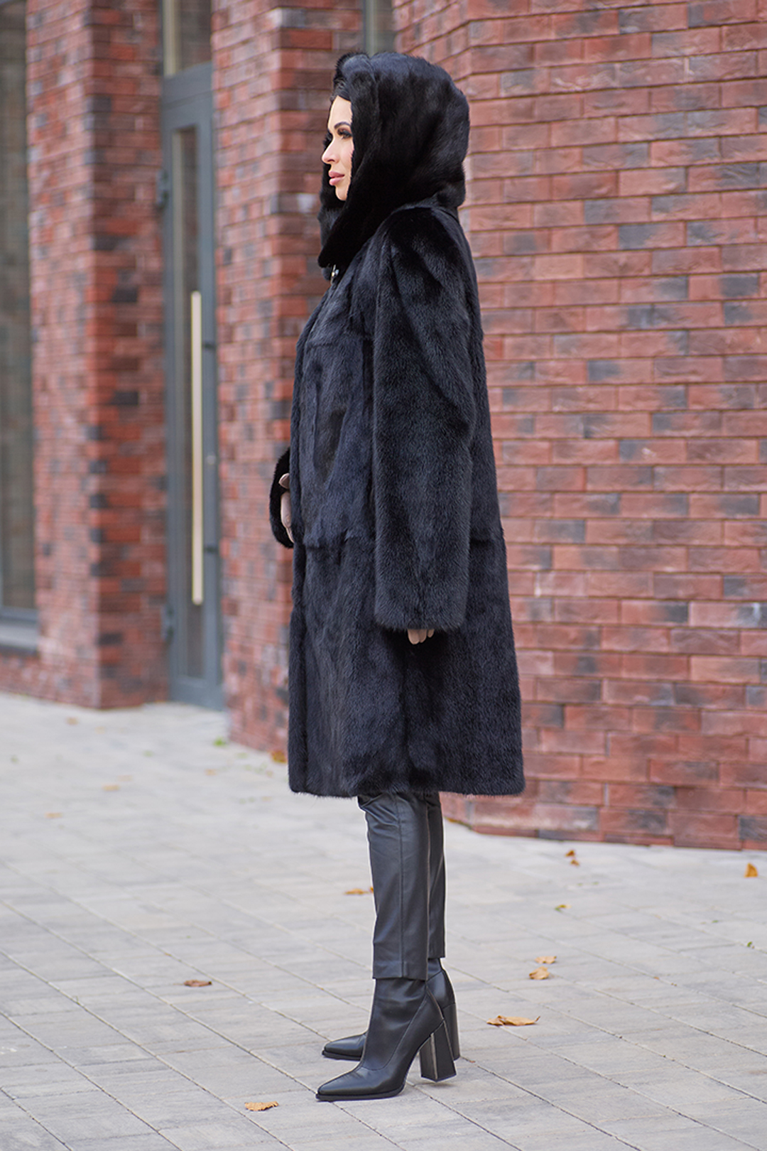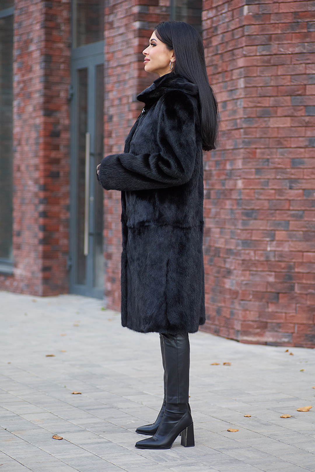 Модель «Классика» - шубка А-образного силуэта из цельных пластин меха норки.