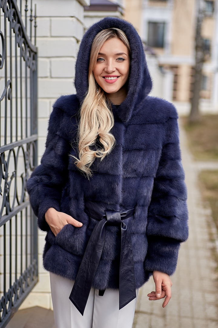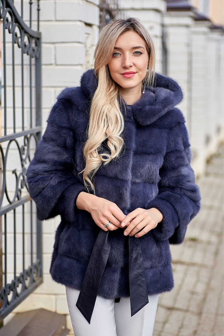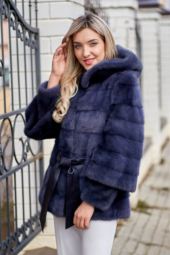 Шуба норковая Летучая мышь (Топаз) с капюшоном