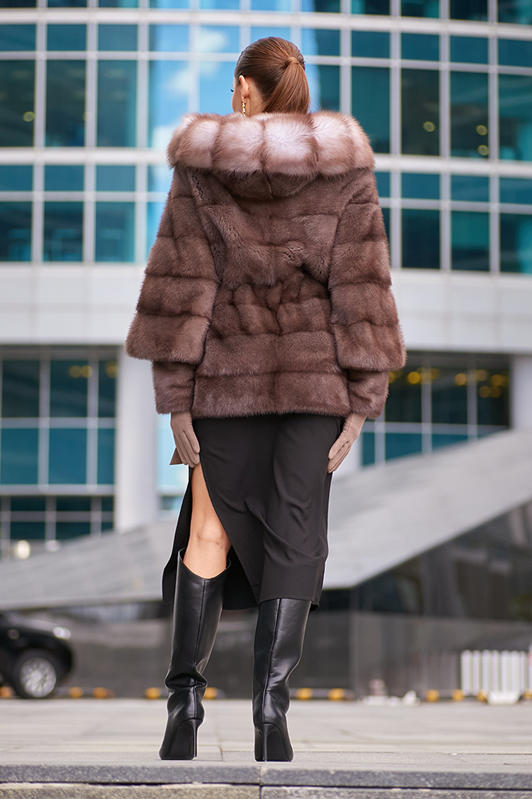 Данная модель может быть выполнена в поперечной раскладке цельных шкурок норки или в диагональной.