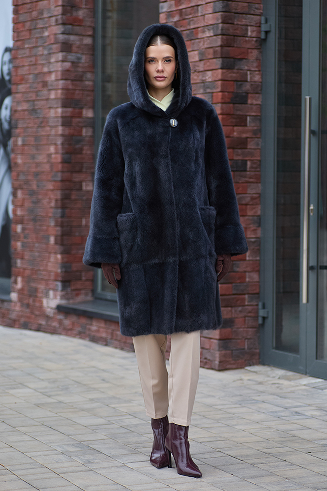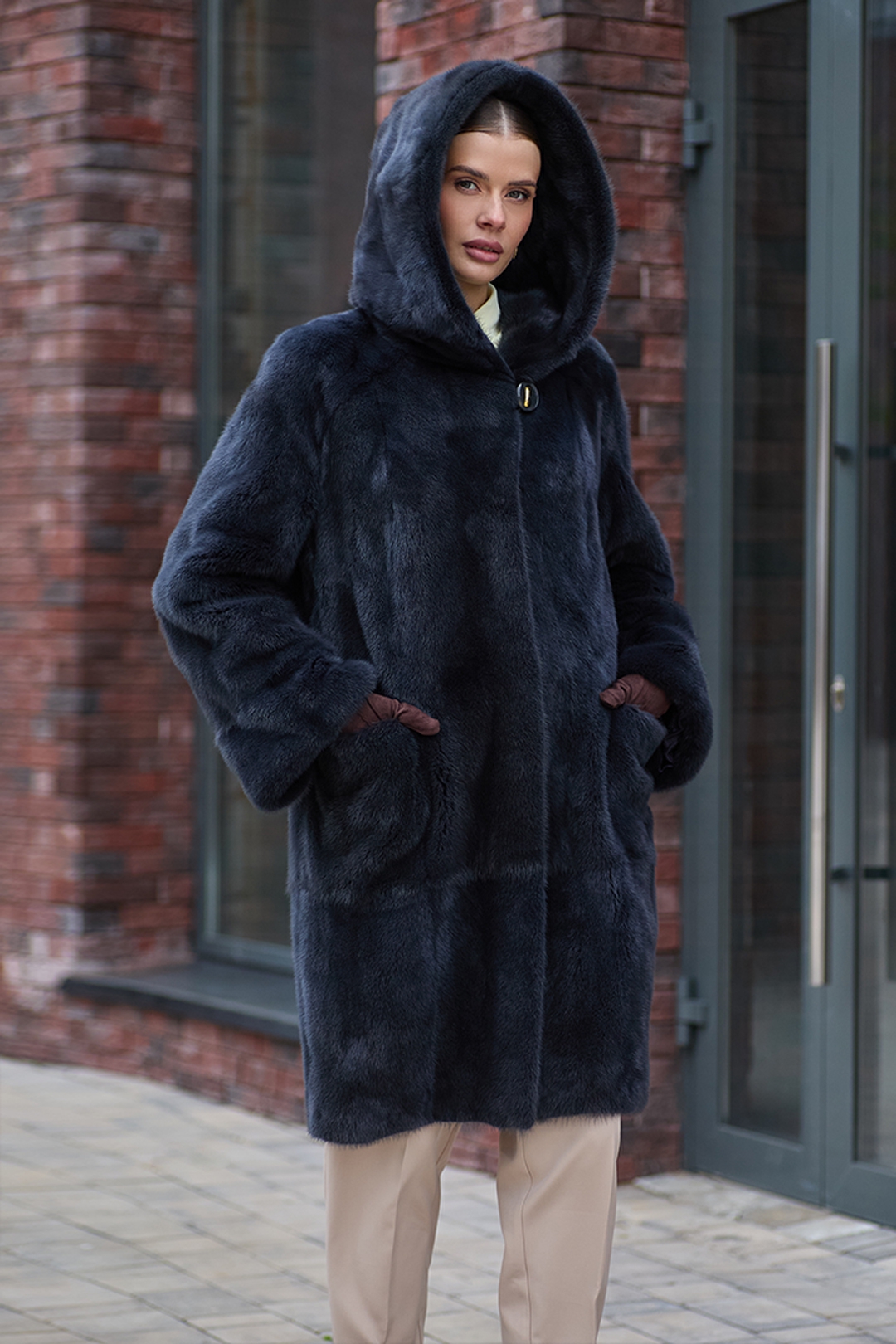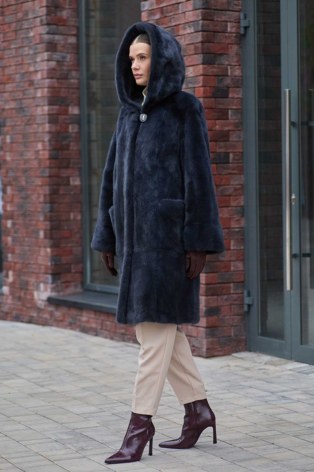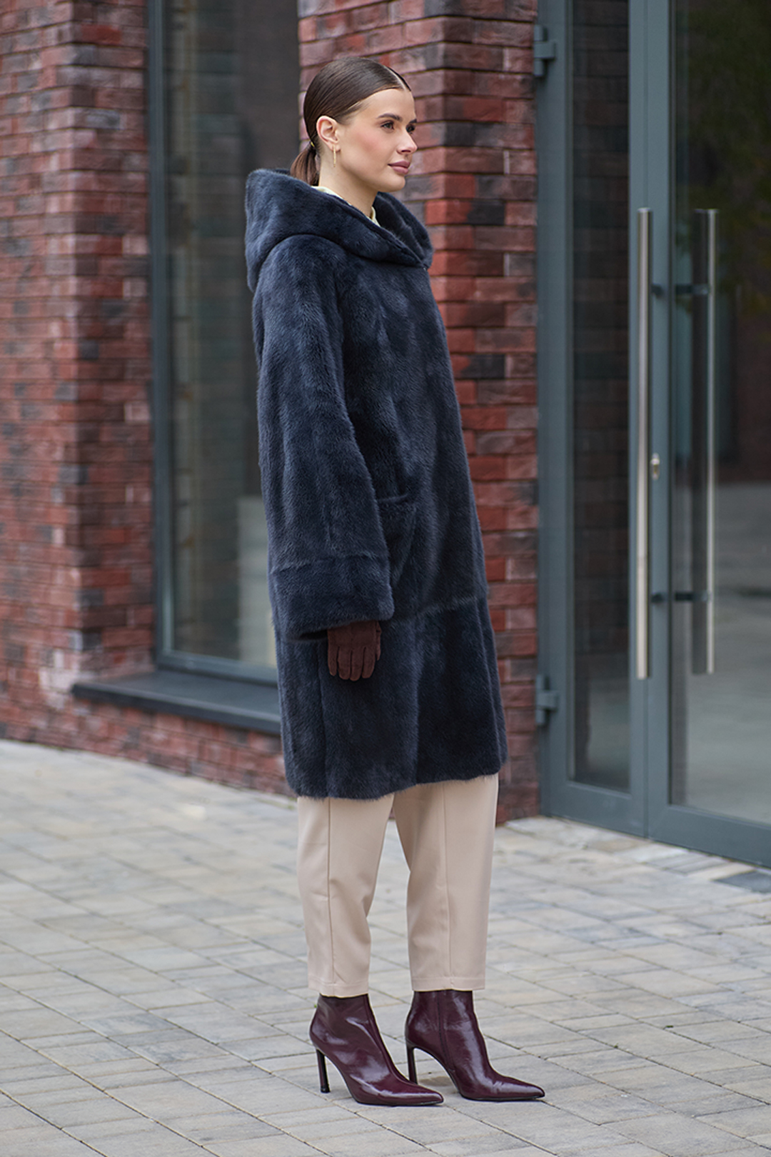 Шуба норковая "Оксана" (Графит) с капюшоном