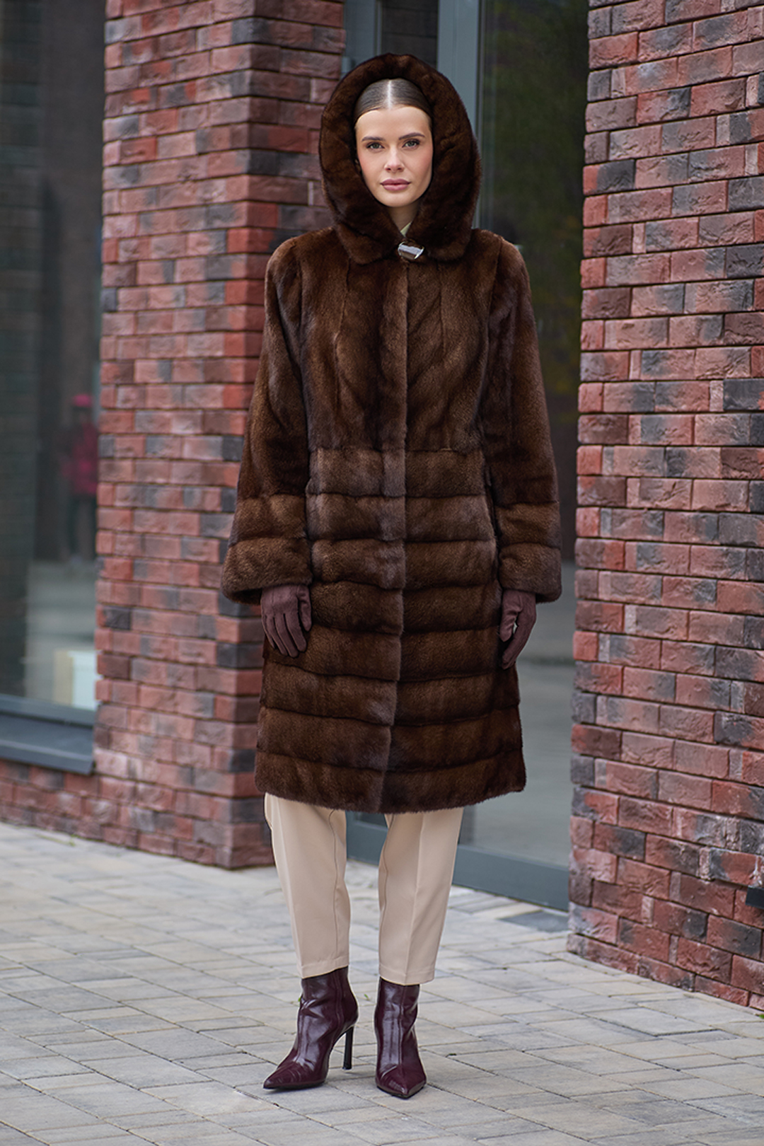 Шуба норковая "Парижанка" (Браун Вельвет) с капюшоном