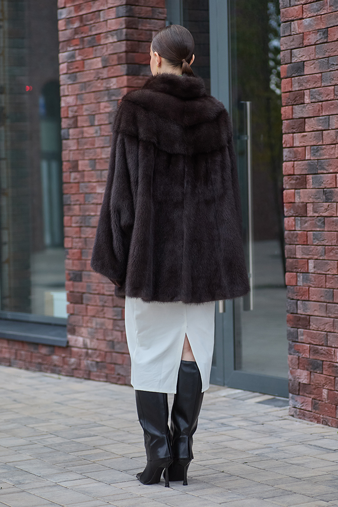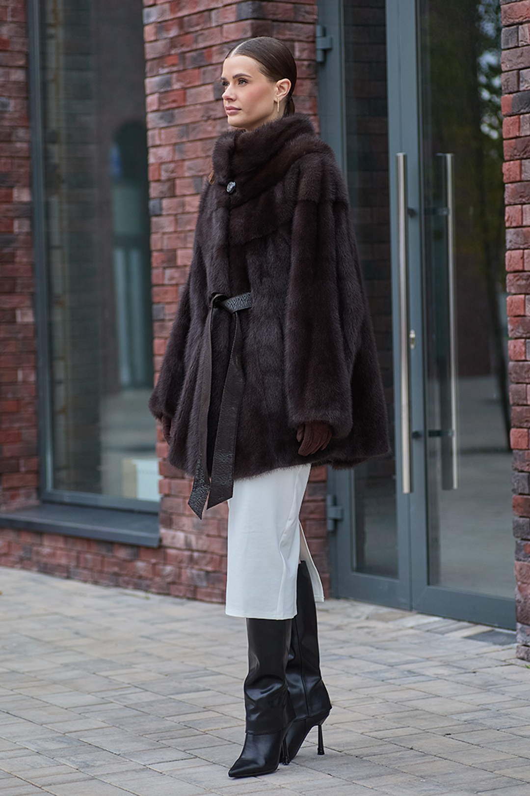 Шуба норковая "Пончо" (Алеут) воротник стойка