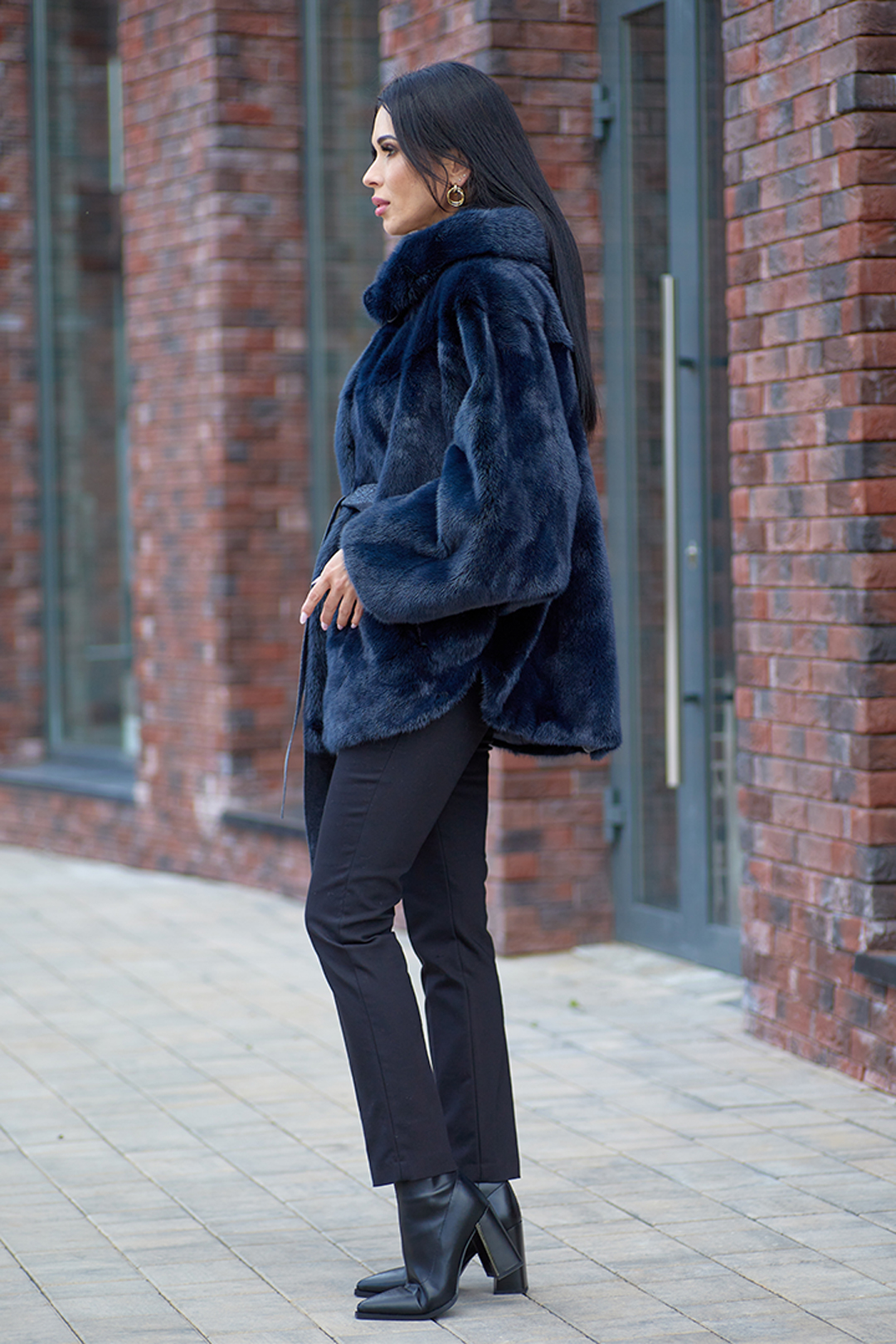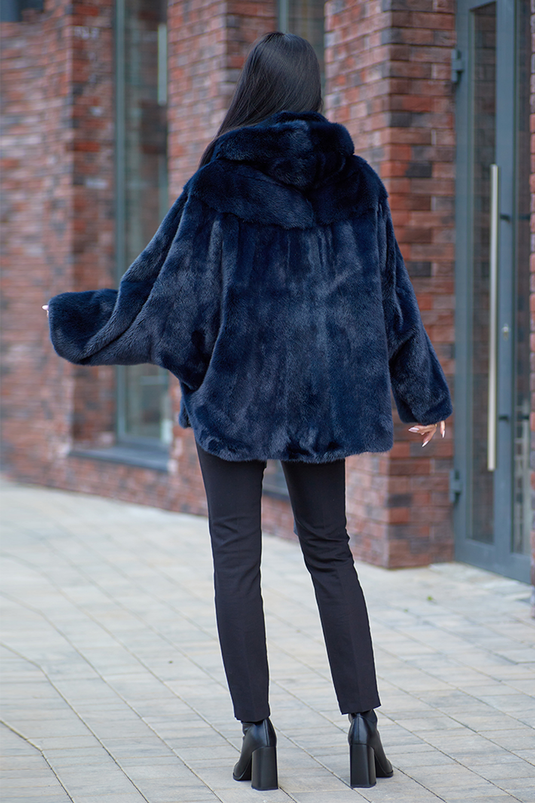 Шуба норковая "Пончо" (Ночь) с капюшоном