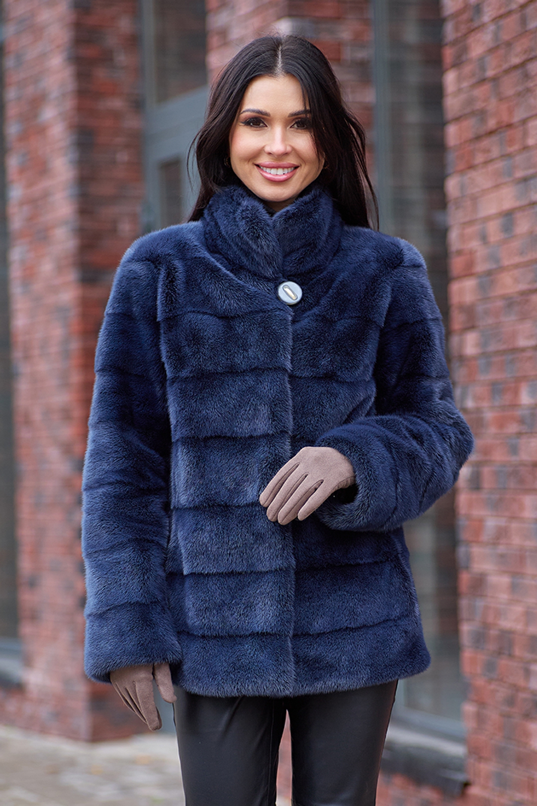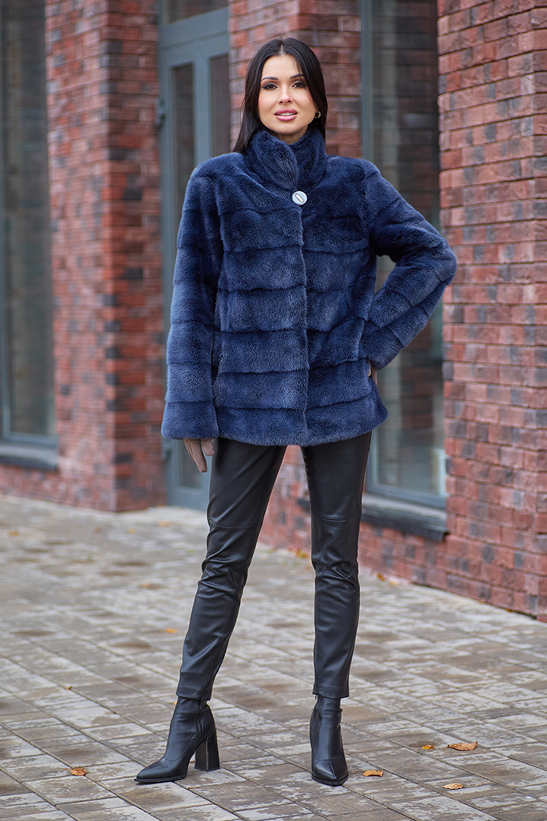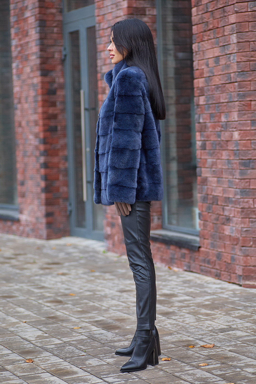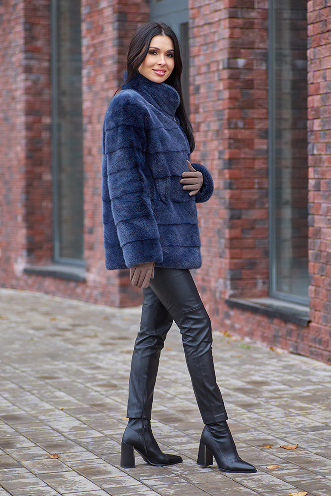 Шуба норковая Поперечный крой (Топаз) воротник стойка