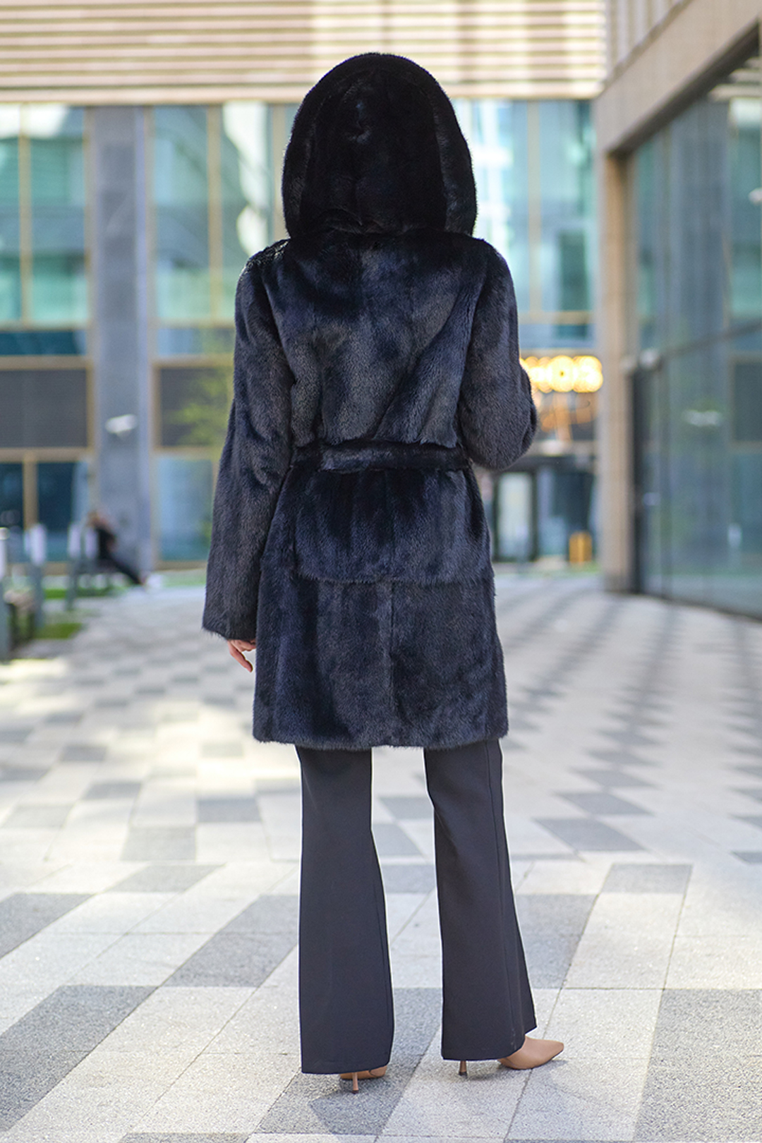 Шуба норковая "Светлана" (Black Velvet) с капюшоном