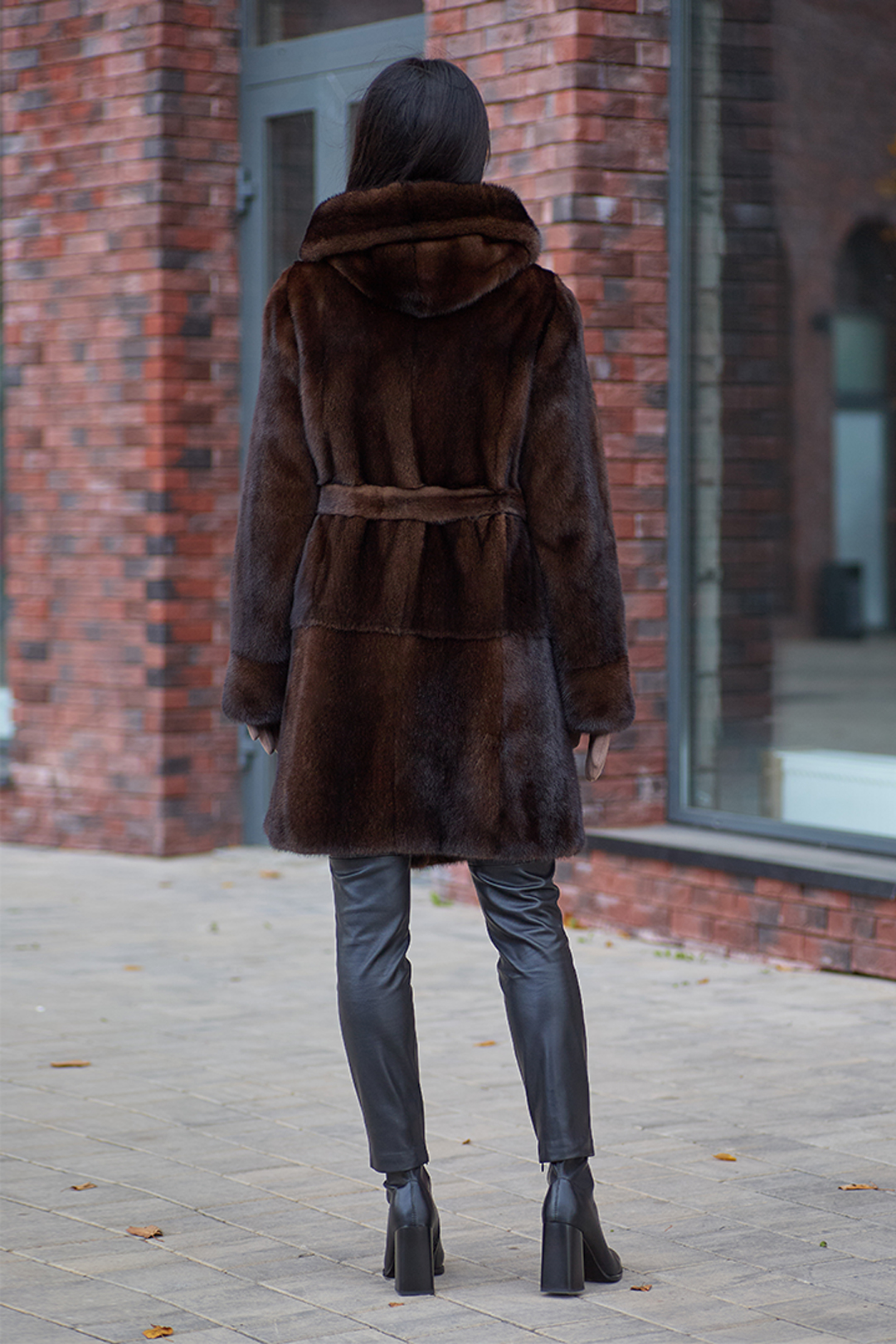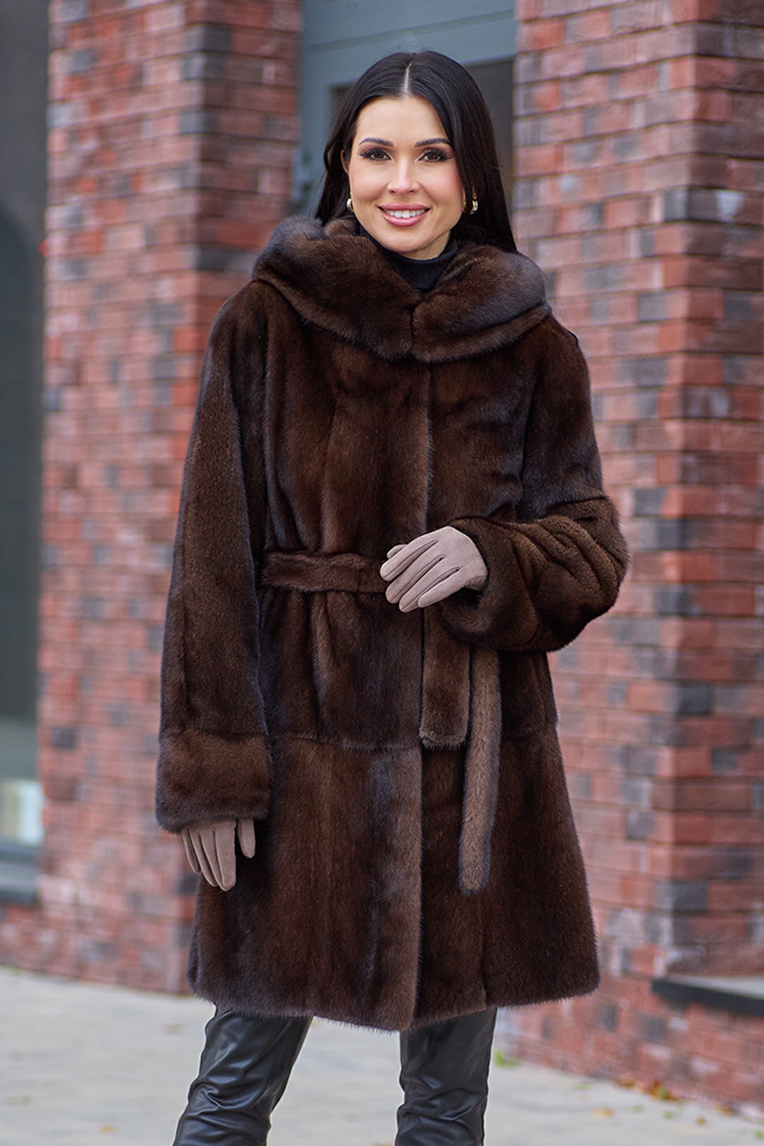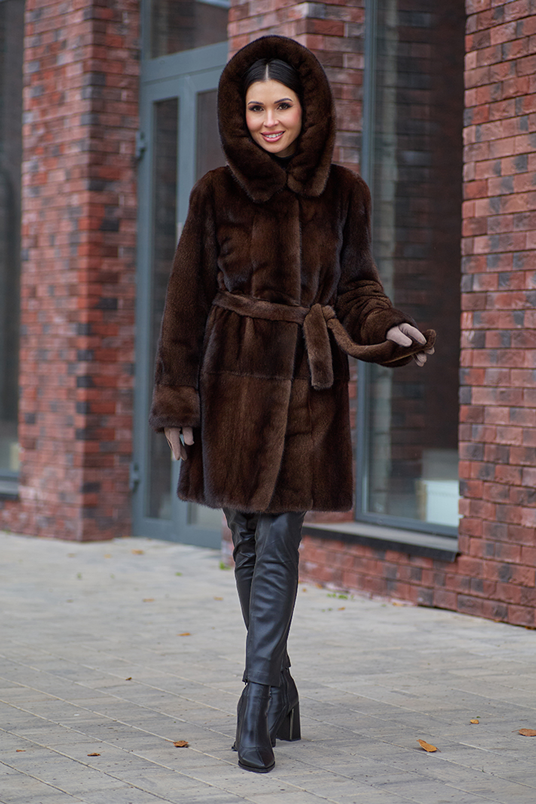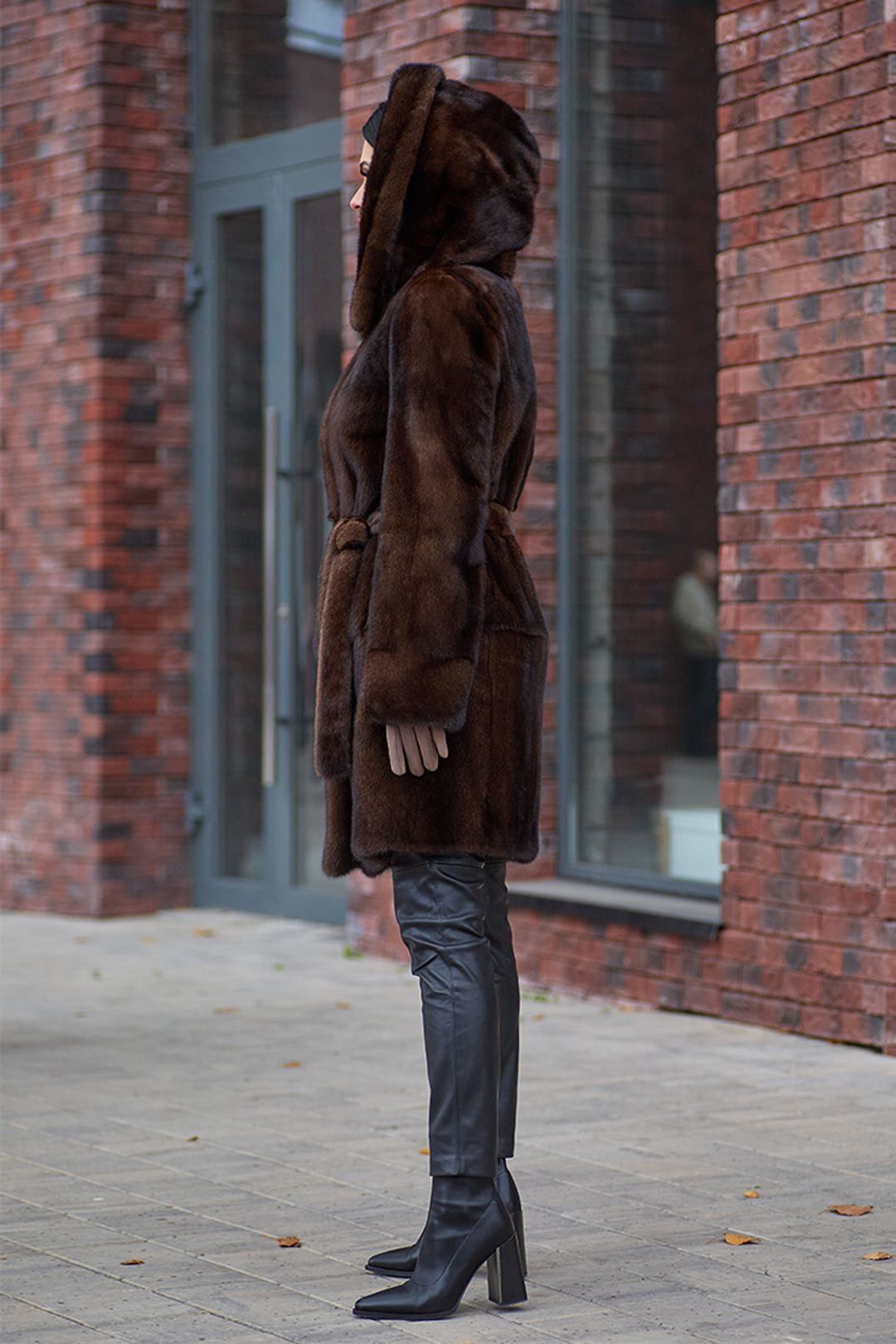 Шуба норковая "Светлана" (Браун Вельвет) с капюшоном