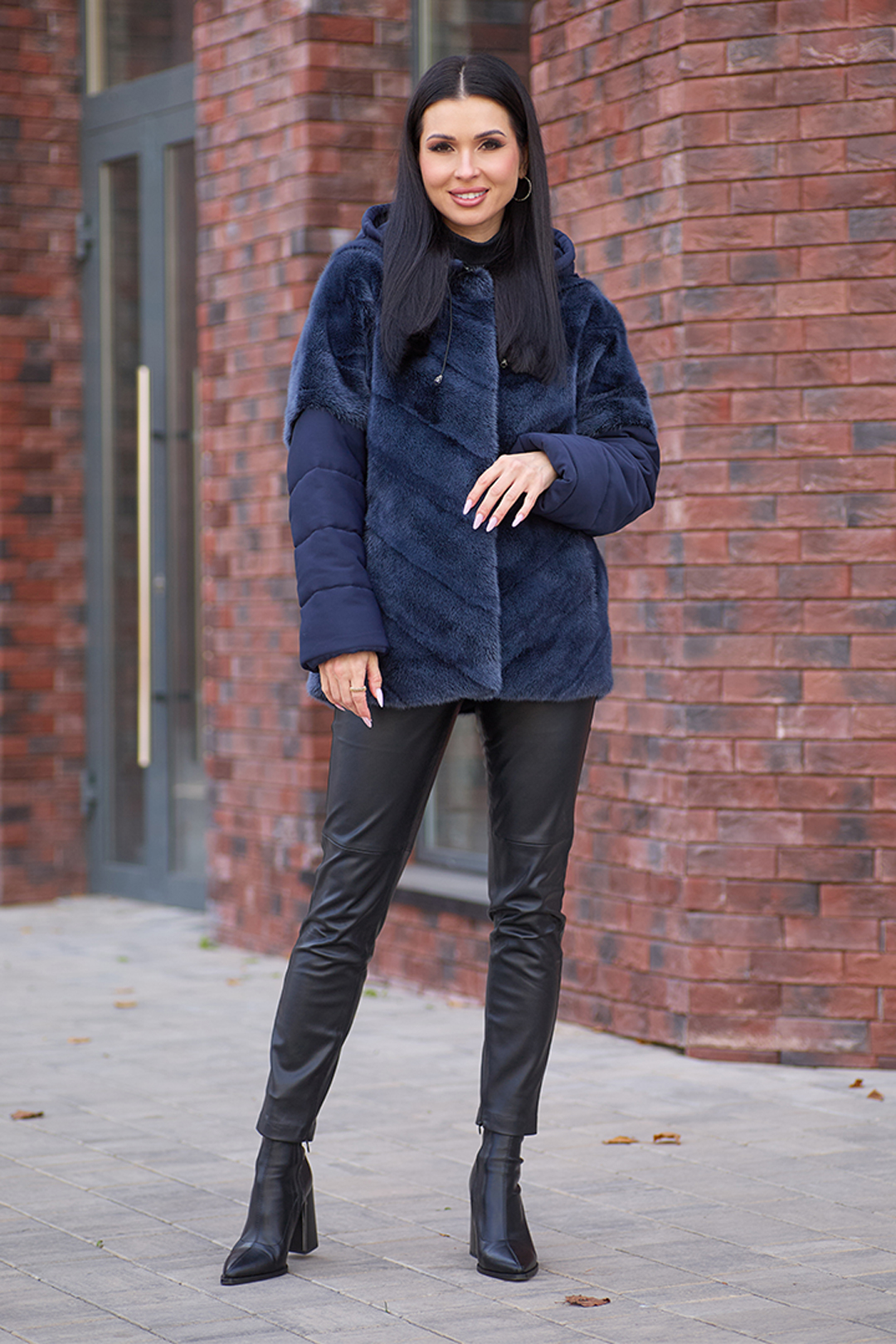 Шуба норковая "Диана" (Сапфир) с капюшоном